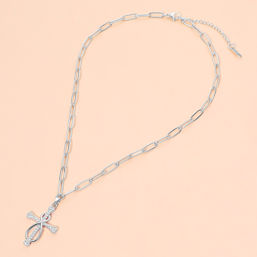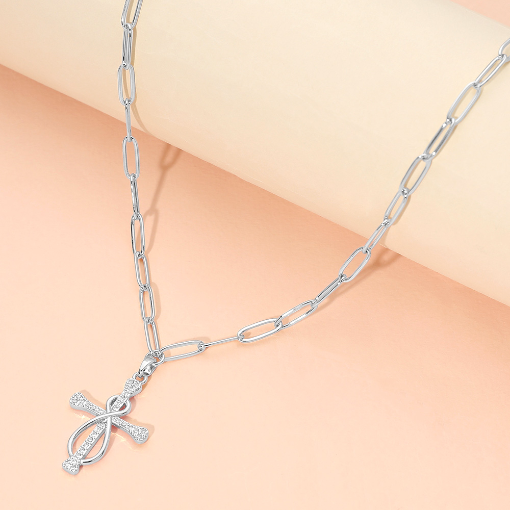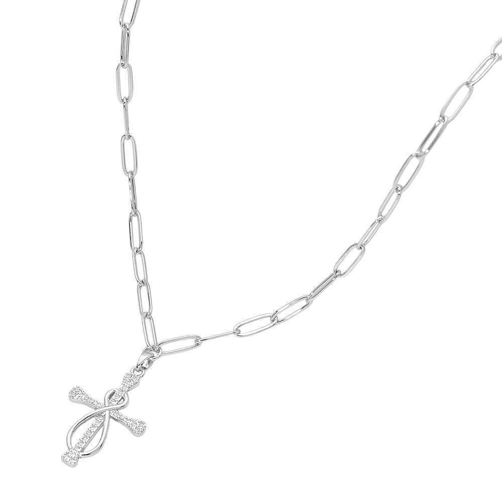 • This knot cross charm link chain necklace features an elegant intertwined cross design accented with shimmering details for a refined statement. The modern link chain adds a trendy touch, making it ideal for everyday wear, meaningful gifting, faith-inspired styling, or boutique jewelry collections seeking timeless appeal.