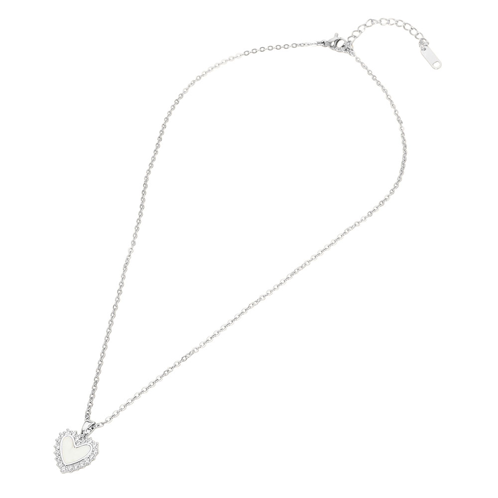 Stainless Steel CZ Trim Mother of Pearl Heart Pendant Necklace Stainless Steel CZ Trim Mother of Pearl Heart Pendant Necklace Stainless Steel CZ Trim Mother of Pearl Heart Pendant Necklace Stainless Steel CZ Trim Mother of Pearl Heart Pendant Necklace