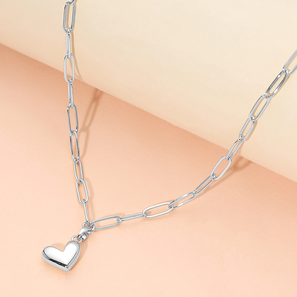 Stainless Steel Heart Pendant Paperclip Chain Necklace