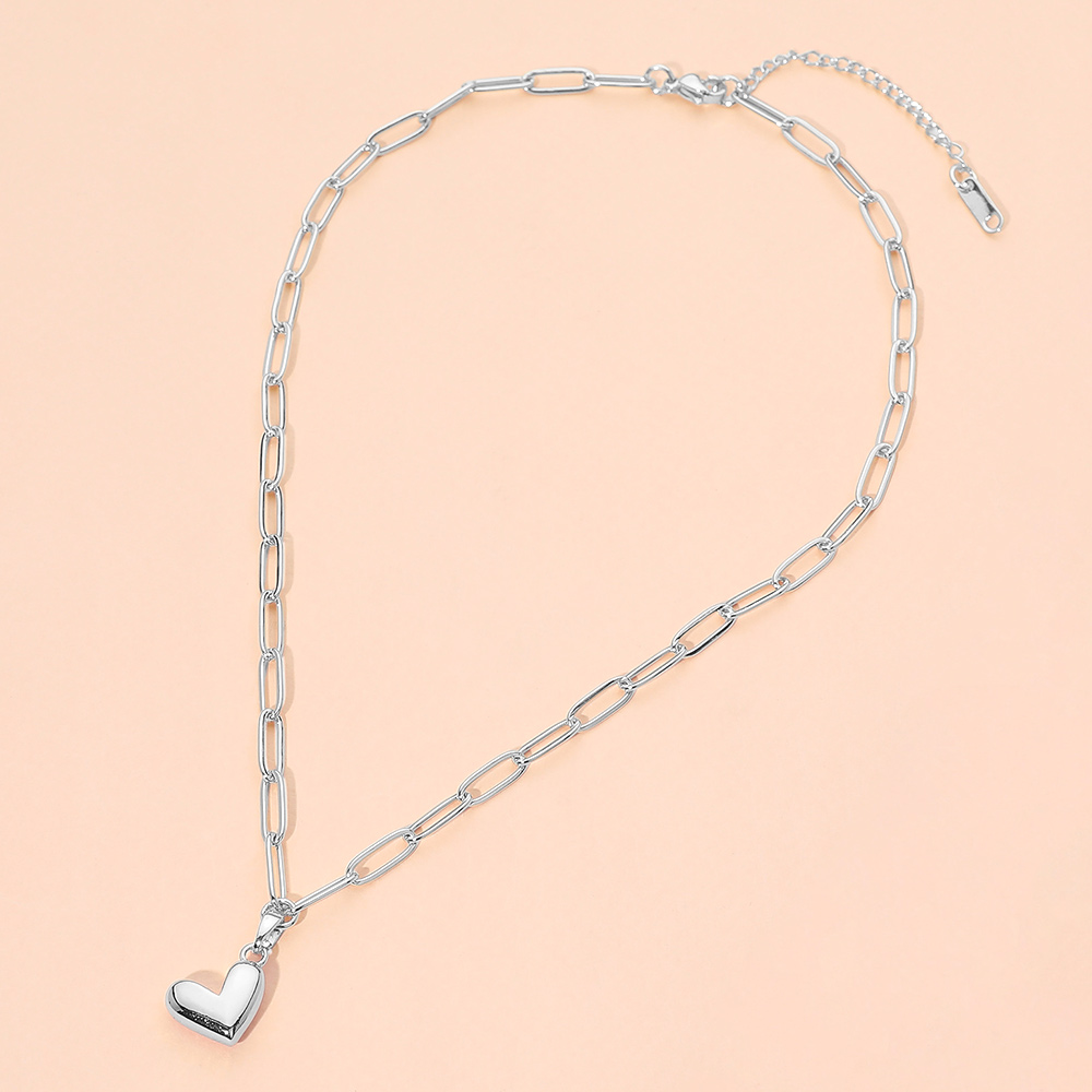 Details • Necklace Size : 15.75" + 2.25" L • Pendant Size : 0.5" X 0.75" • This paperclip chain heart pendant necklace features a smooth heart charm paired with a modern elongated link chain for a clean, minimalist look. Perfect for everyday wear or layering, it offers timeless appeal and meaningful style, making it ideal for gifting, boutique collections, and contemporary jewelry assortments. • Stainless Steel