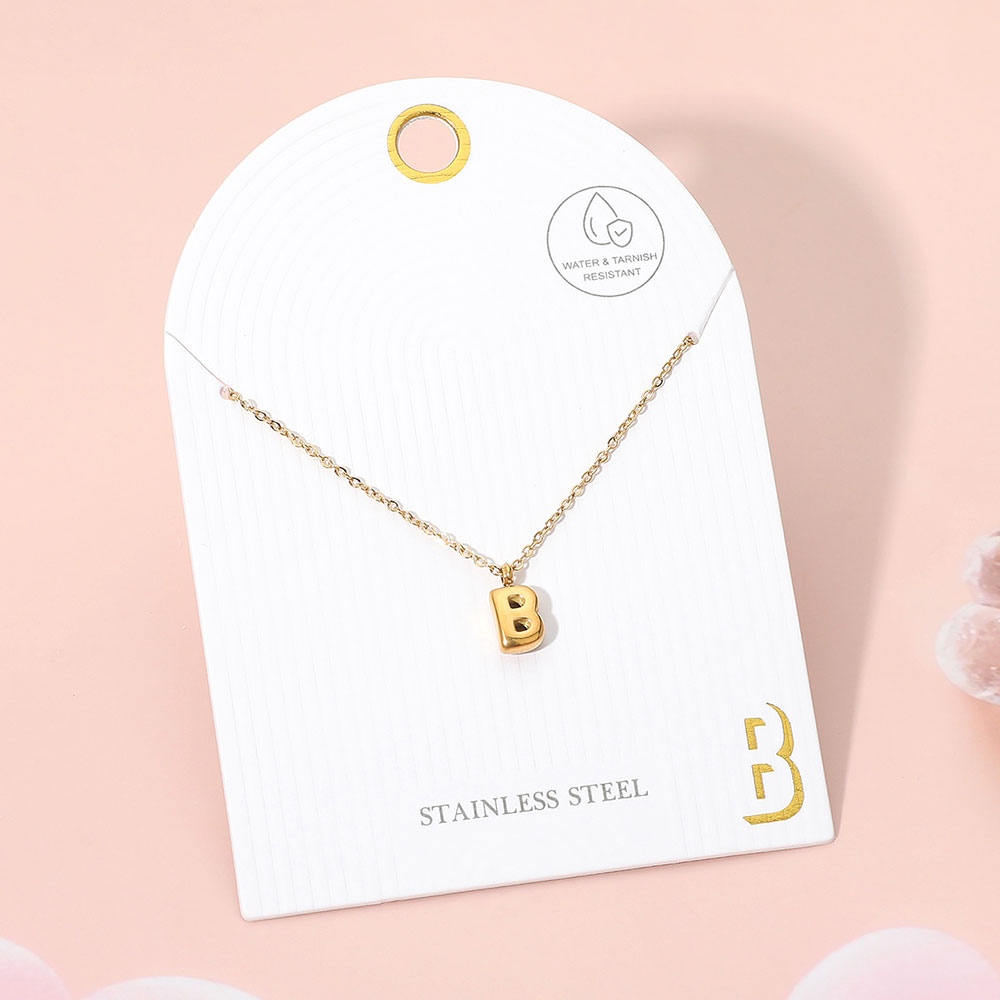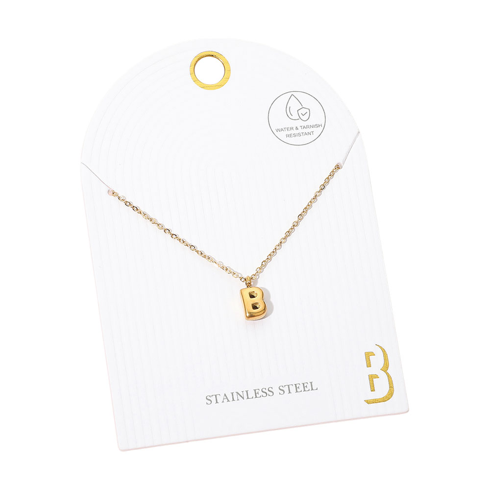 • Chic stainless steel necklace featuring a minimalist initial monogram pendant. Designed for everyday wear, this water and tarnish resistant piece adds a personal touch and effortless elegance to any outfit.