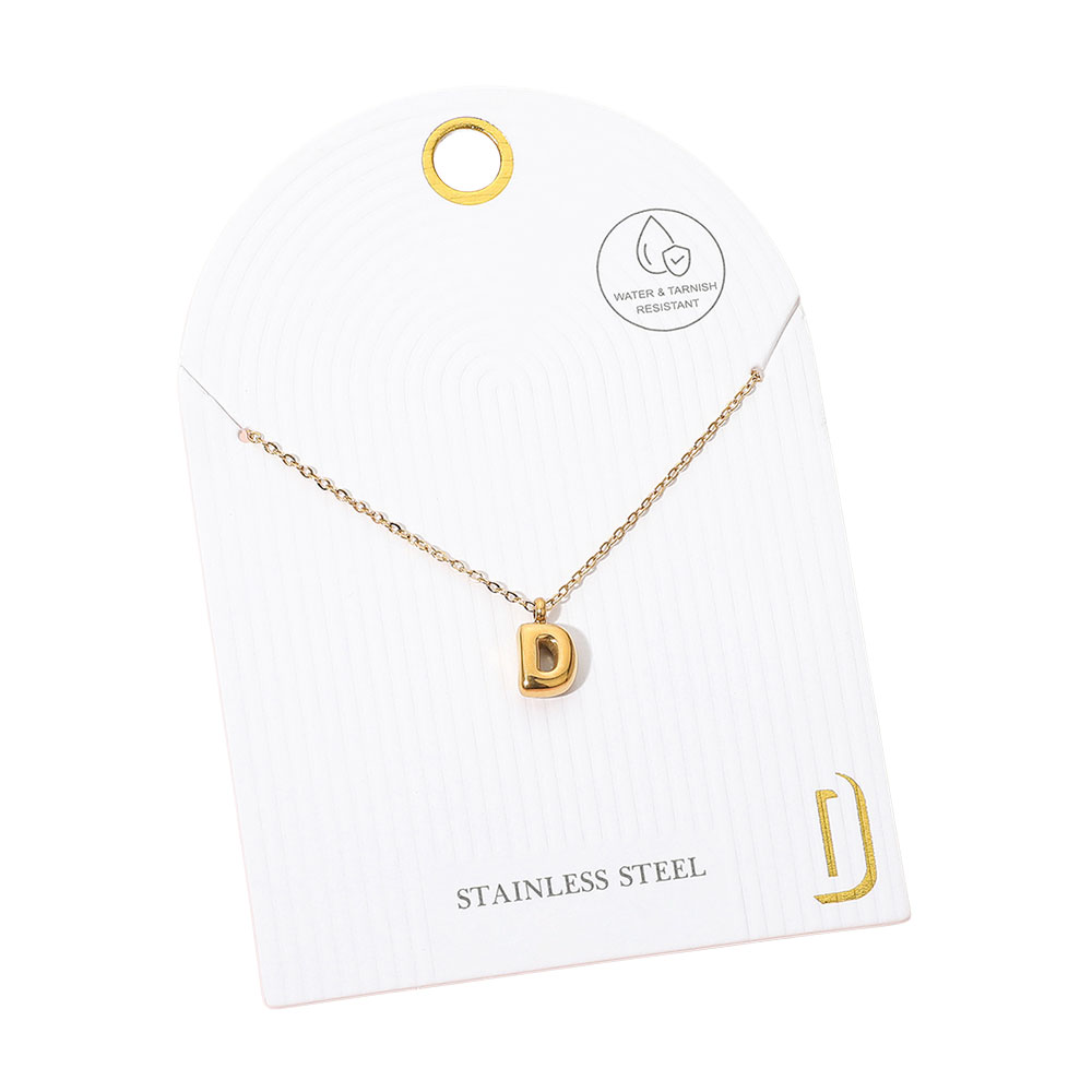 • Chic stainless steel necklace featuring a minimalist initial monogram pendant. Designed for everyday wear, this water and tarnish resistant piece adds a personal touch and effortless elegance to any outfit.