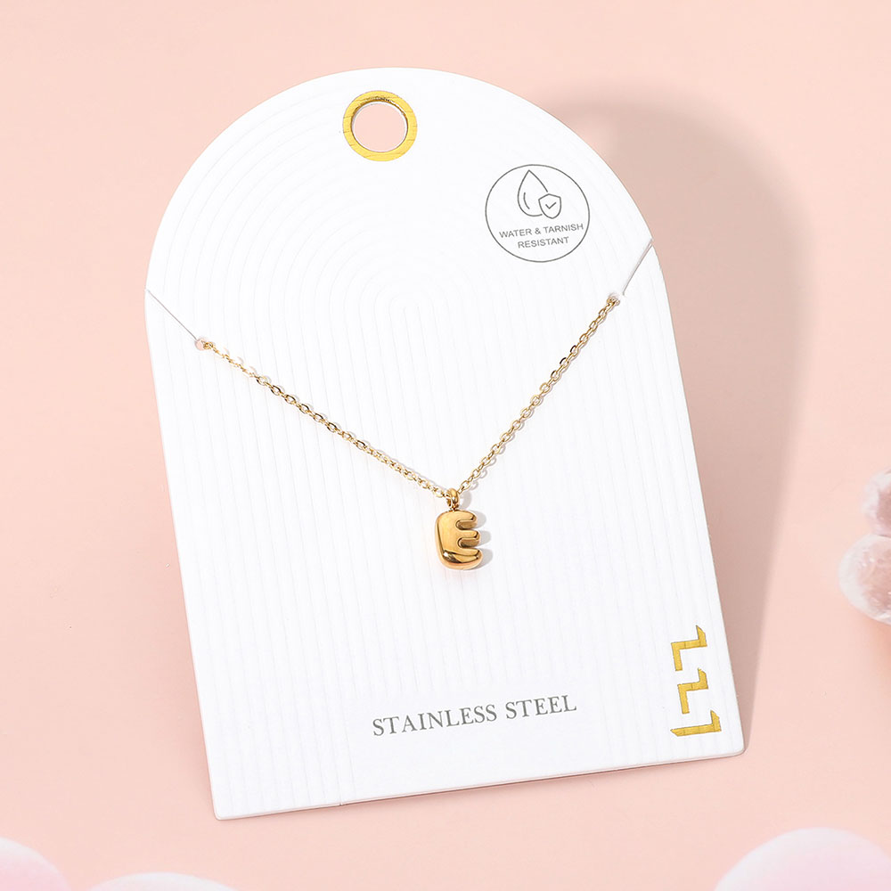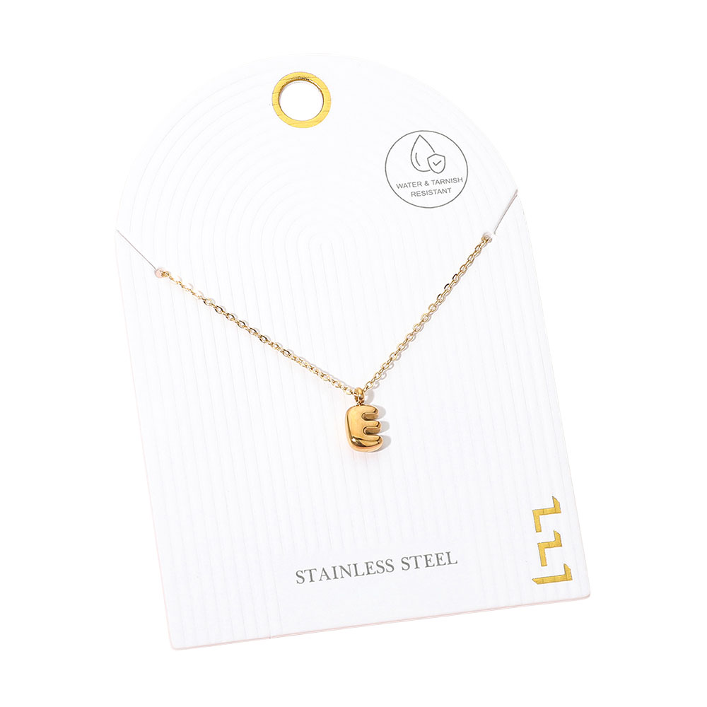 • Chic stainless steel necklace featuring a minimalist initial monogram pendant. Designed for everyday wear, this water and tarnish resistant piece adds a personal touch and effortless elegance to any outfit.