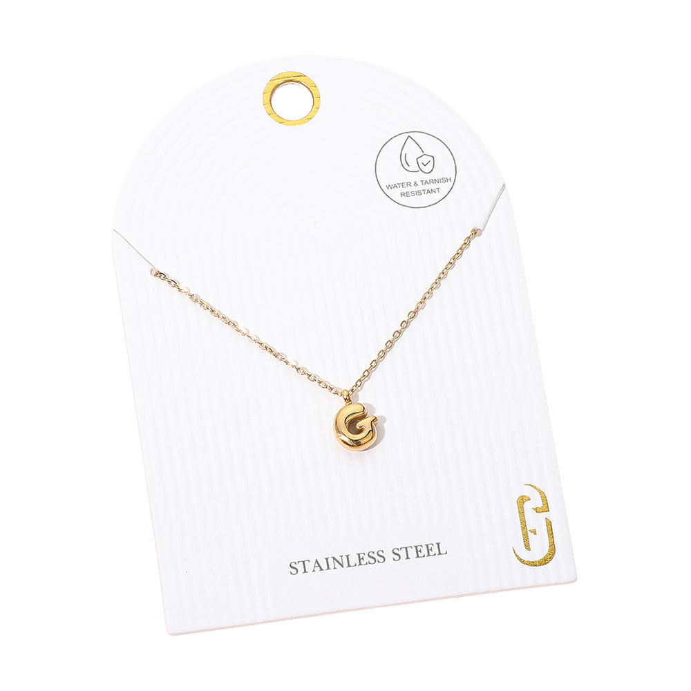 • Chic stainless steel necklace featuring a minimalist initial monogram pendant. Designed for everyday wear, this water and tarnish resistant piece adds a personal touch and effortless elegance to any outfit.