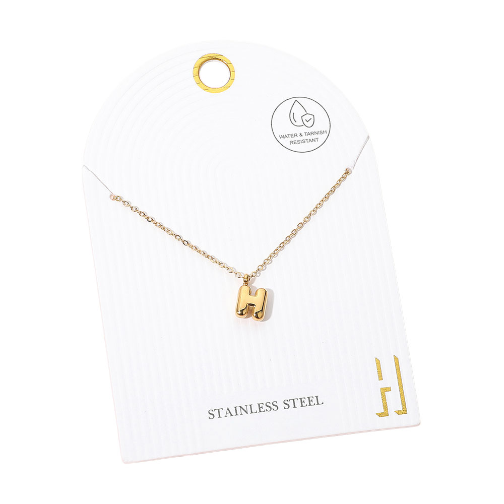 • Chic stainless steel necklace featuring a minimalist initial monogram pendant. Designed for everyday wear, this water and tarnish resistant piece adds a personal touch and effortless elegance to any outfit.