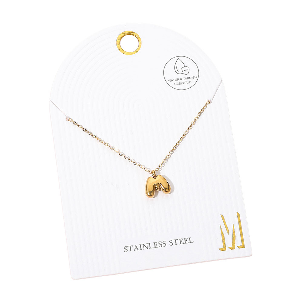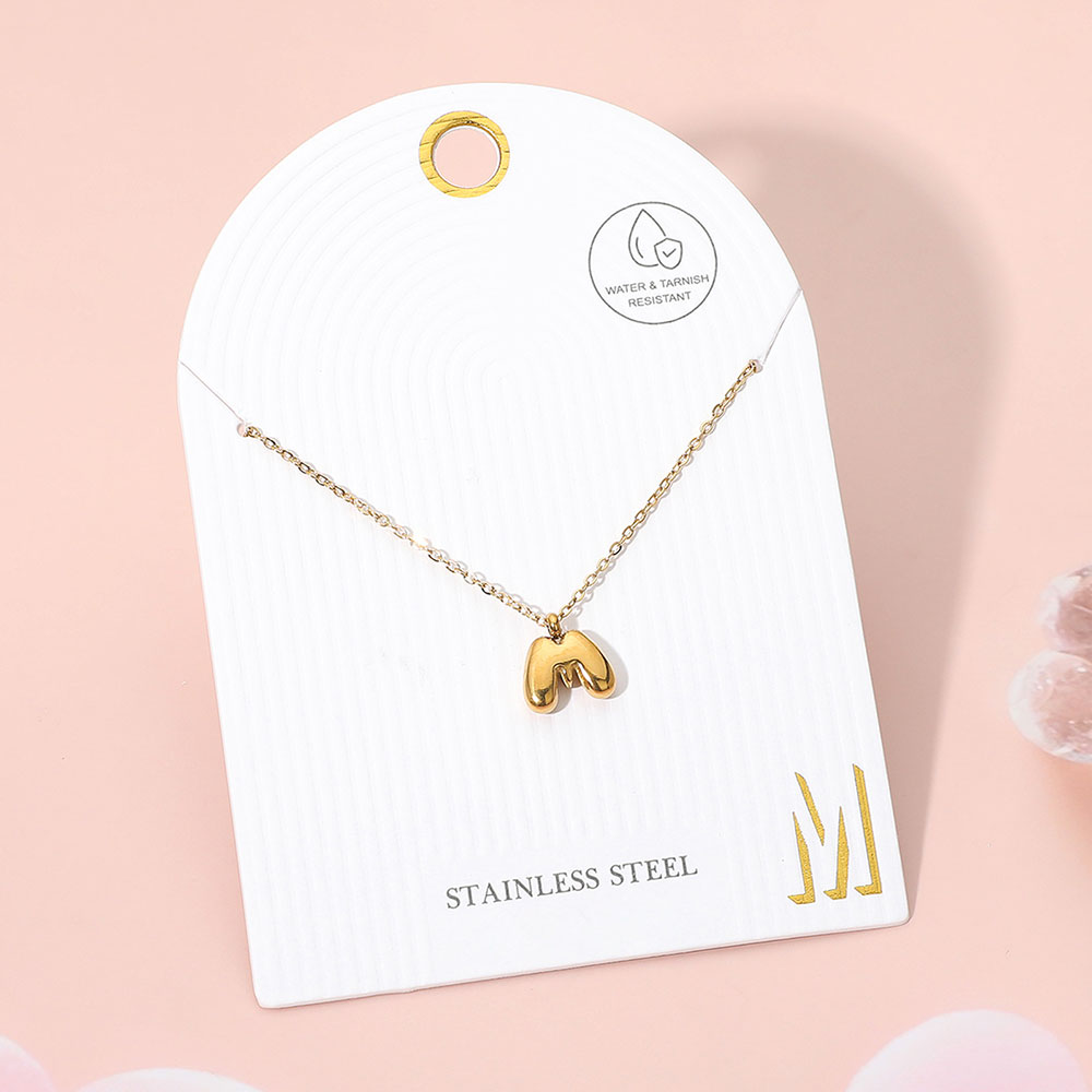 • Chic stainless steel necklace featuring a minimalist initial monogram pendant. Designed for everyday wear, this water and tarnish resistant piece adds a personal touch and effortless elegance to any outfit.