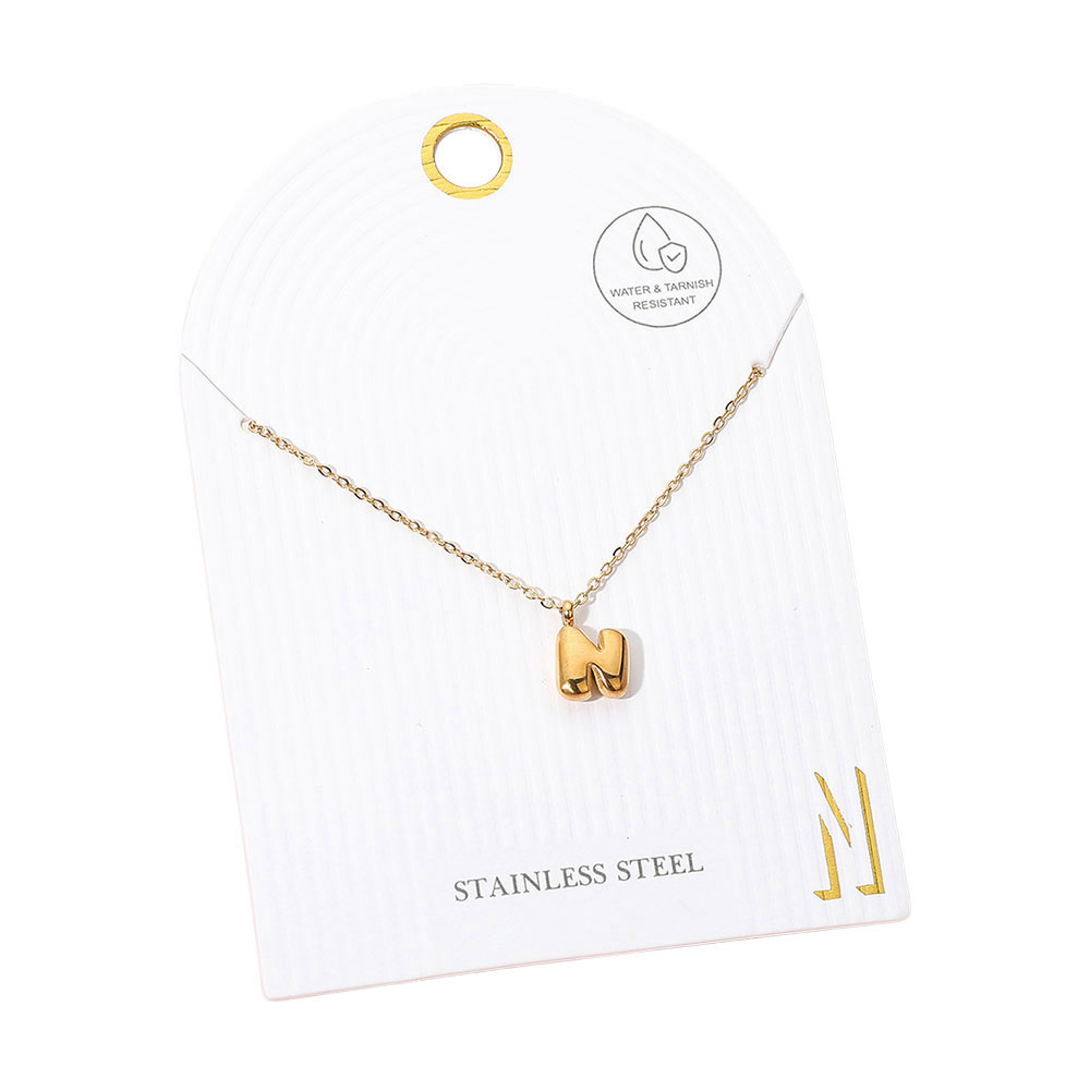 • Chic stainless steel necklace featuring a minimalist initial monogram pendant. Designed for everyday wear, this water and tarnish resistant piece adds a personal touch and effortless elegance to any outfit.