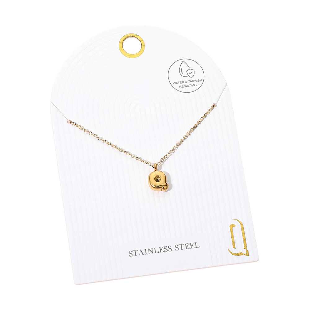 • Chic stainless steel necklace featuring a minimalist initial monogram pendant. Designed for everyday wear, this water and tarnish resistant piece adds a personal touch and effortless elegance to any outfit.