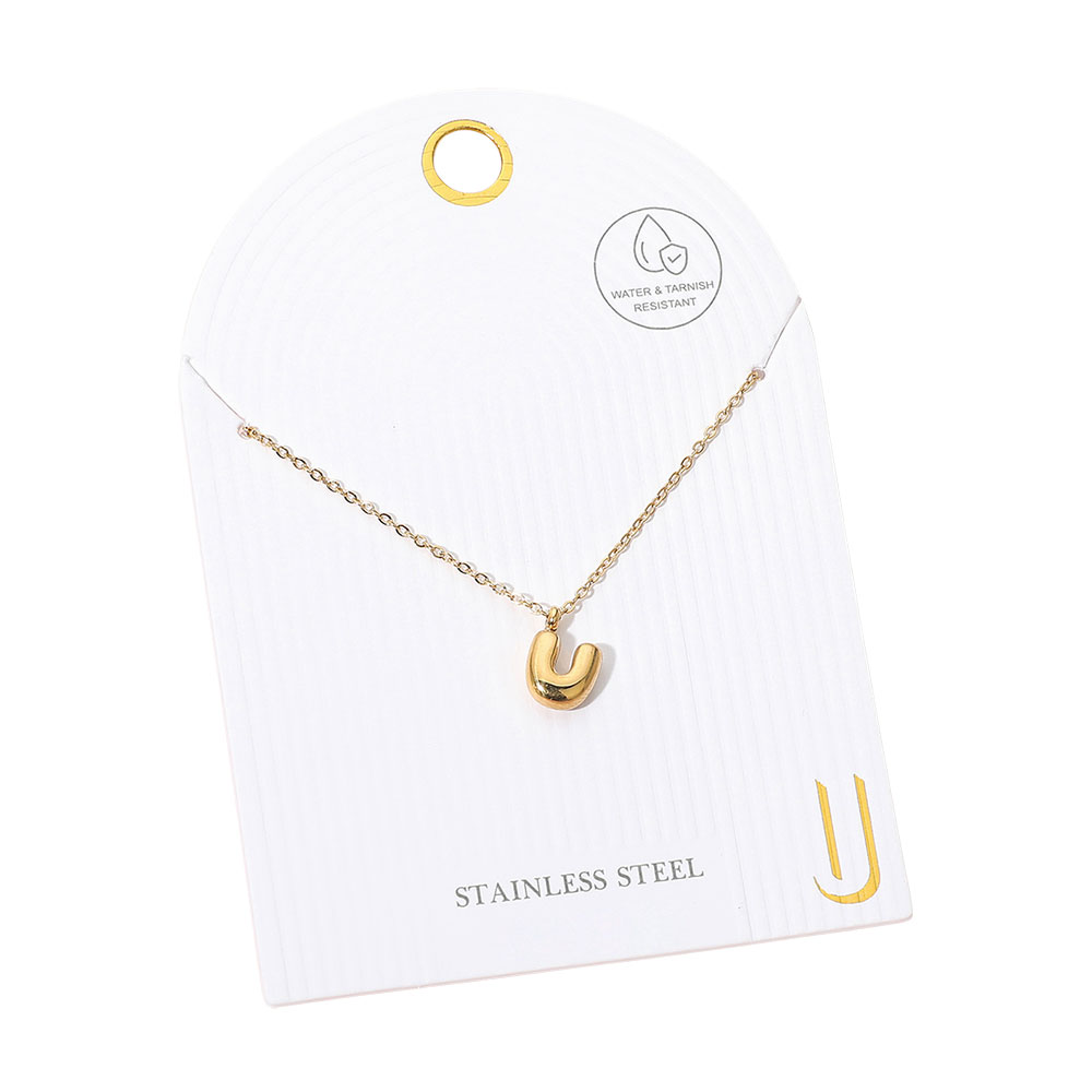 • Chic stainless steel necklace featuring a minimalist initial monogram pendant. Designed for everyday wear, this water and tarnish resistant piece adds a personal touch and effortless elegance to any outfit.