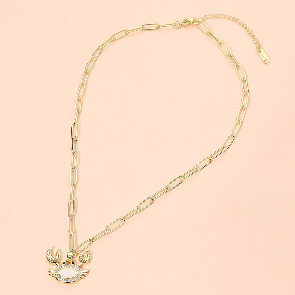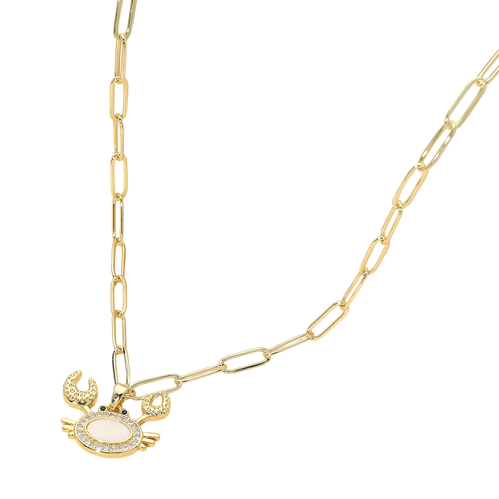 Stainless Steel Mother of Pearl CZ Stone Paved Crab Charm Pendant Paperclip Chain Necklace Stainless Steel Mother of Pearl CZ Stone Paved Crab Charm Pendant Paperclip Chain Necklace Stainless Steel Mother of Pearl CZ Stone Paved Crab Charm Pendant Paperclip Chain Necklace