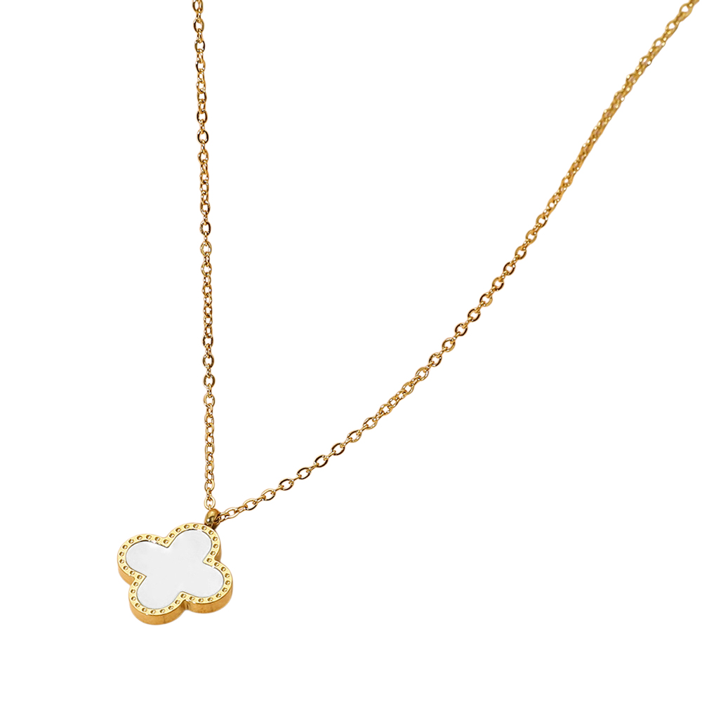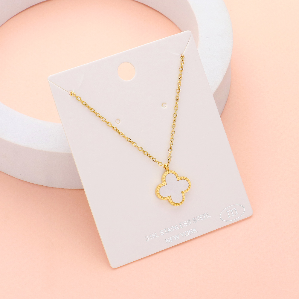 Details • Necklace Size : 16" + 1.5" L • Pendant Size : 0.6" X 0.6" • Elegant quatrefoil pendant necklace featuring a sleek chain and refined charm. A versatile accessory that adds timeless style to any outfit, from casual looks to formal occasions. Perfect as a meaningful gift or a personal staple piece, designed to bring a touch of elegance to your jewelry collection. • Stainless Steel