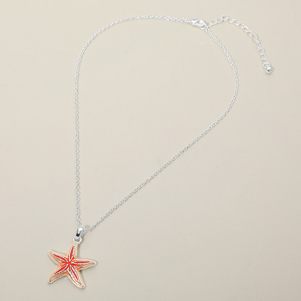 • Starfish charm pendant necklace featuring a sleek ocean-inspired design that adds a coastal accent to everyday outfits. Ideal for beach boutiques, gift shops, and seasonal displays, this necklace pairs easily with casual or vacation looks and offers strong appeal for customers who love nautical and nature-themed jewelry.