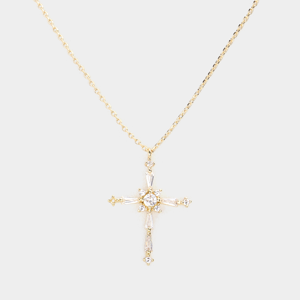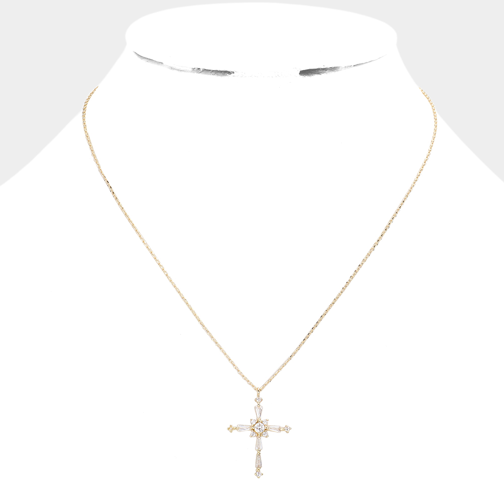 Stone Embellished Cross Pendant Necklace