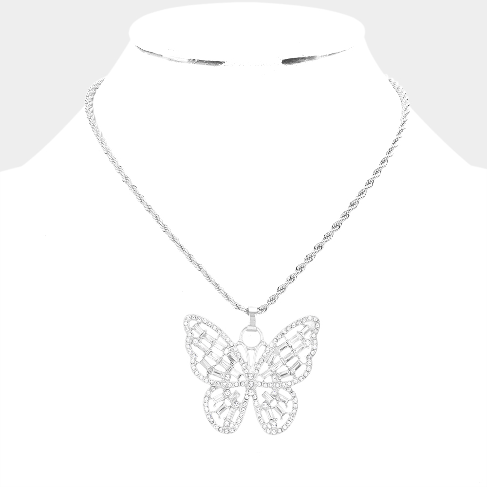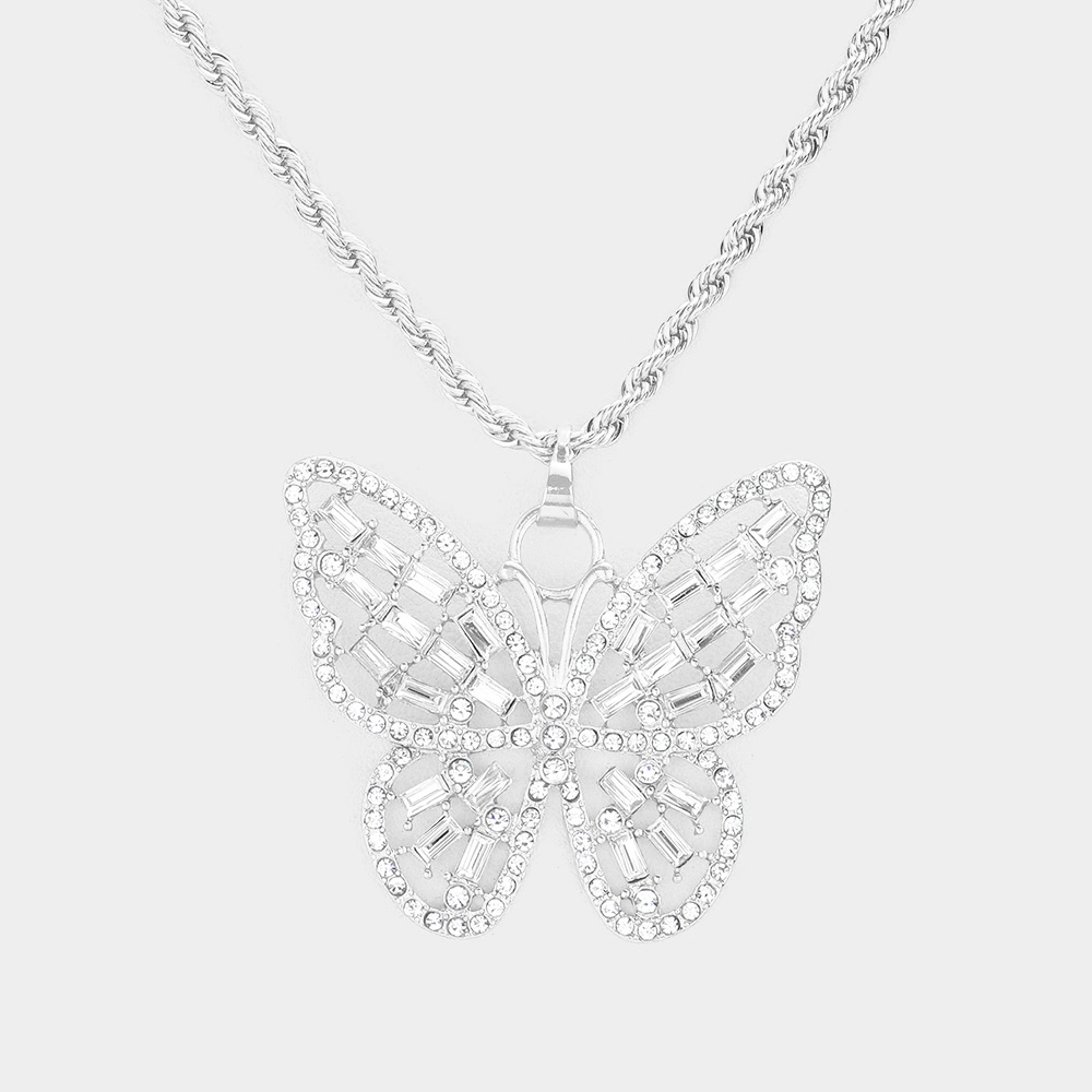 Dainty Butterfly CZ Stone Pendant Accent Rhinestone Paved Necklace