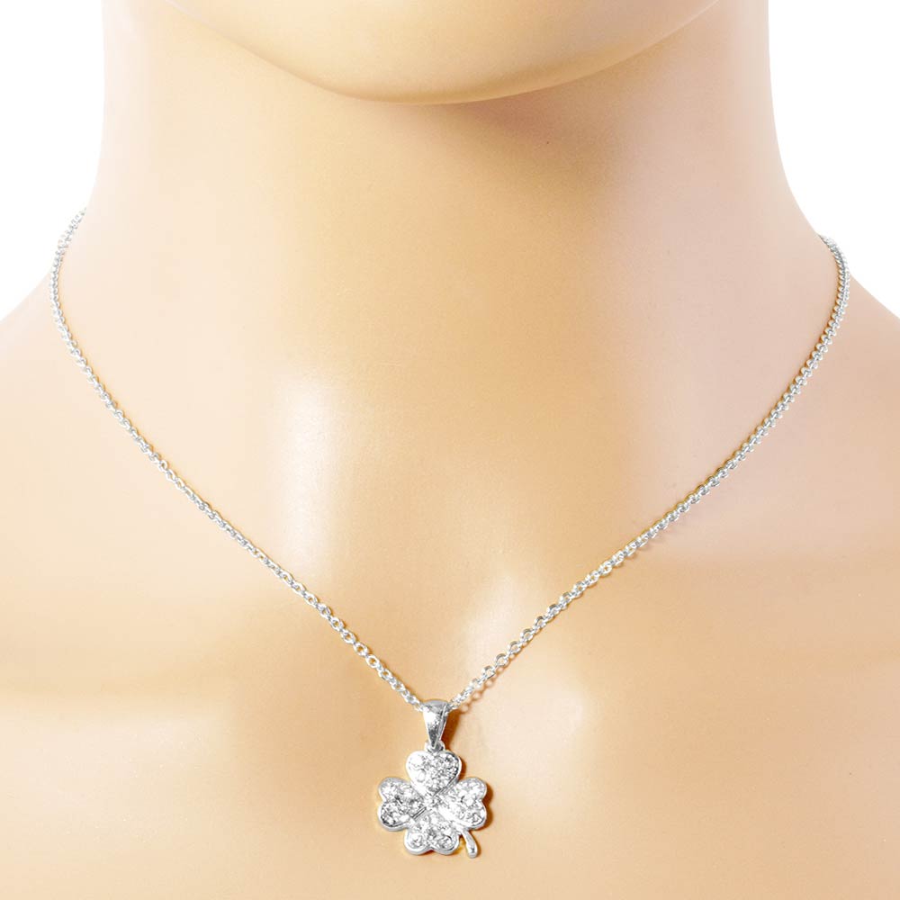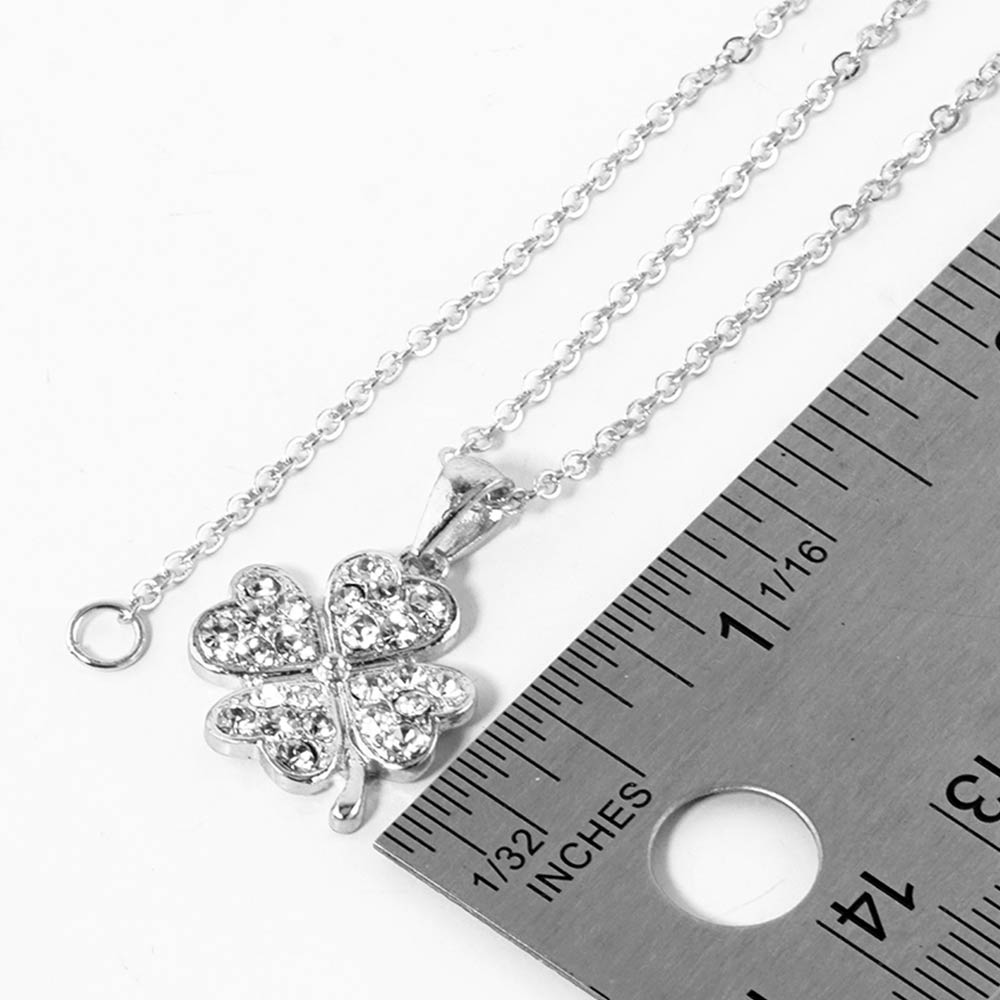 Details • Necklace Size : 15.5" + 3" L • Pendant Size : 0.7" X 1" • This mini clover pendant necklace features a delicate charm accented with subtle sparkle for a refined and meaningful look. Designed to symbolize luck and timeless elegance, it sits beautifully on the neckline and layers effortlessly with other pieces. Perfect for everyday wear or gifting, it adds a graceful touch to casual and dress-ready styles alike. • Lead and Nickel Compliant