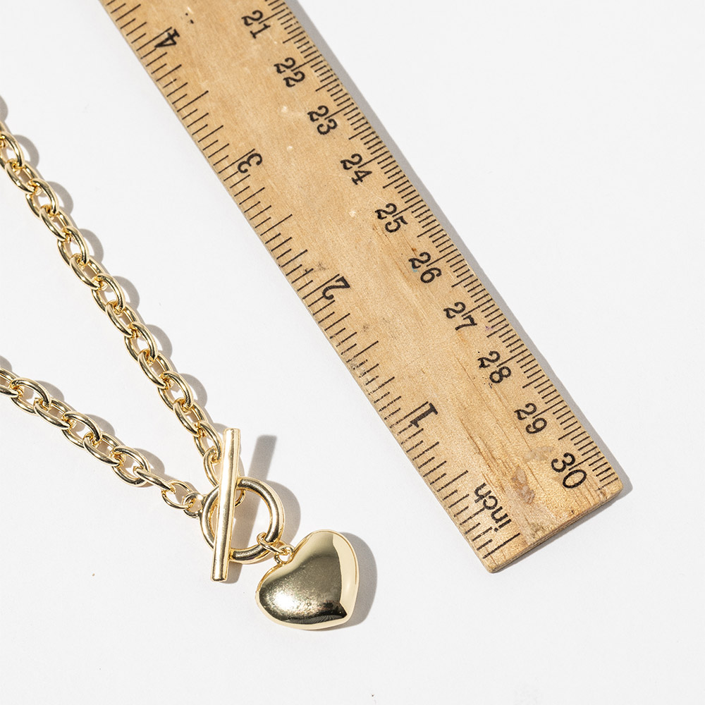 Gold Dipped Chunky Chain Puffy Heart Toggle Pendant Necklace