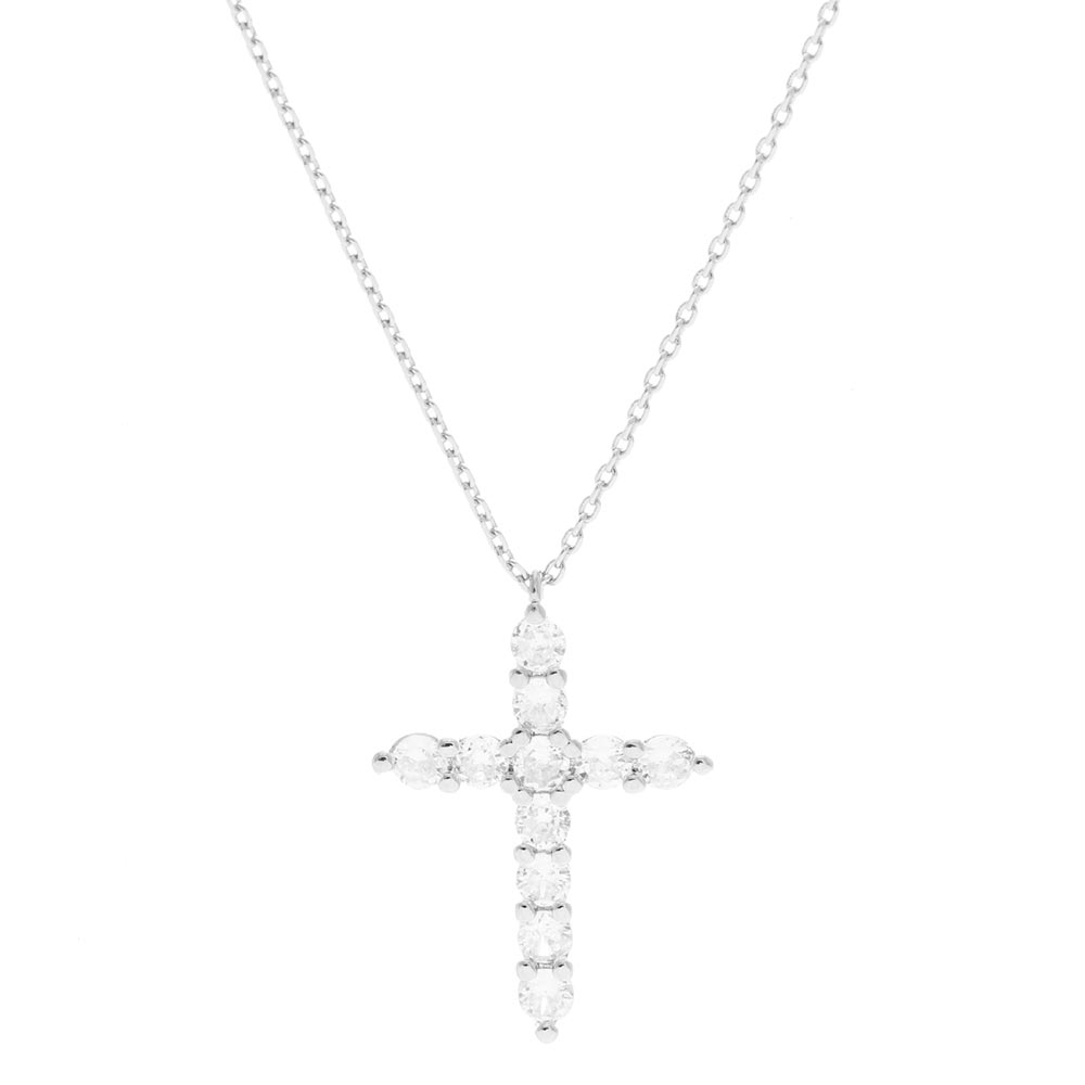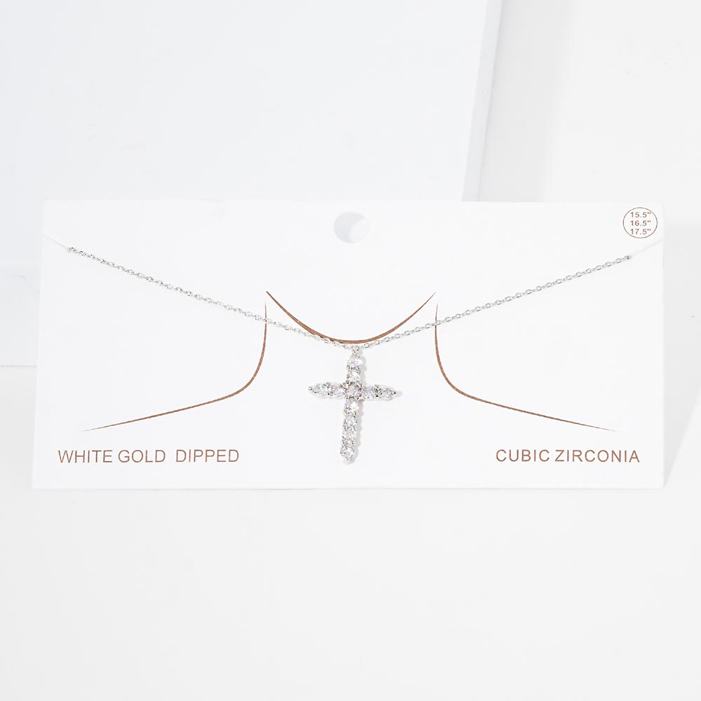 14K Gold Dipped CZ Stone Cross Pendant Necklace