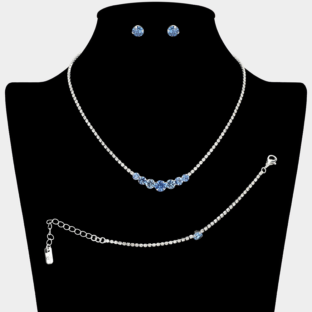 • Timeless matching necklace, stud earring, and bracelet set designed with a clean round stone centerpiece for effortless elegance. Ideal for weddings, formal events, parties, and everyday special occasion styling. A versatile set that delivers refined sparkle and coordinated sophistication.