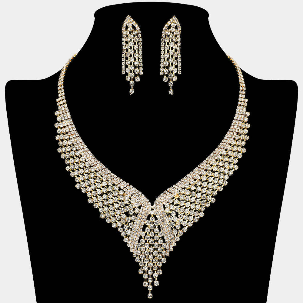 • Make a dazzling entrance with this elegant crystal waterfall necklace and matching earrings set. Featuring cascading layers of sparkling stones, its refined design adds glamour and sophistication to any evening look. Perfect for weddings, formal occasions, and special celebrations.
