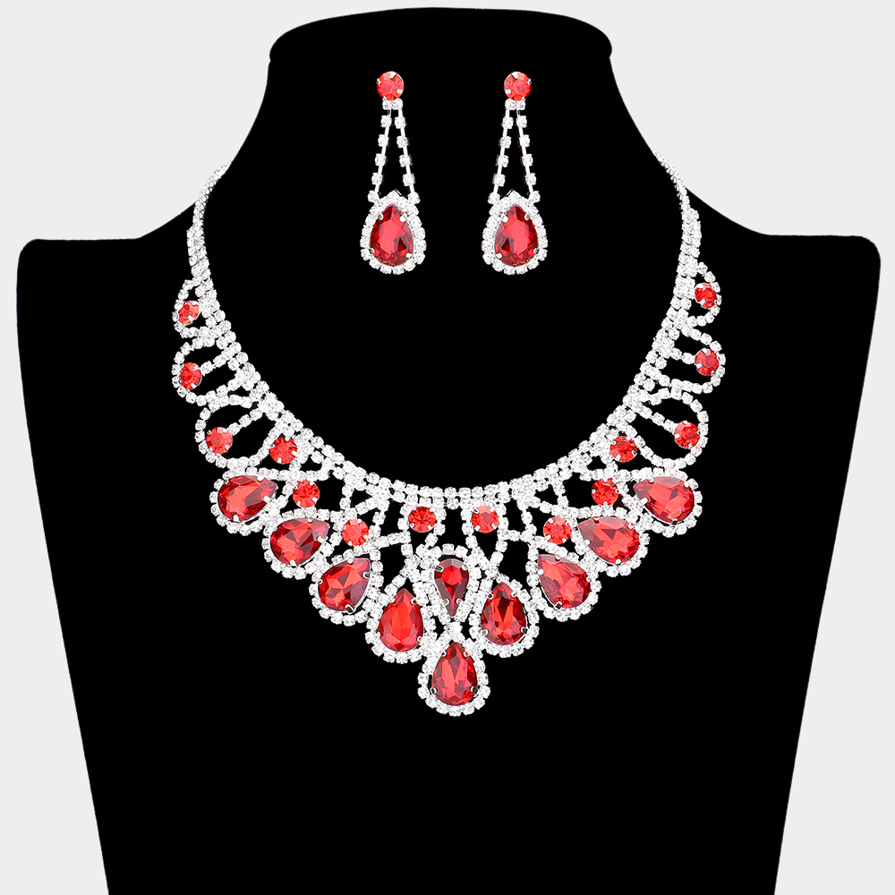 Crystal Teardrop Rhinestone Pave Evening Necklace