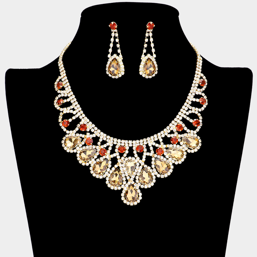 Crystal Teardrop Rhinestone Pave Evening Necklace