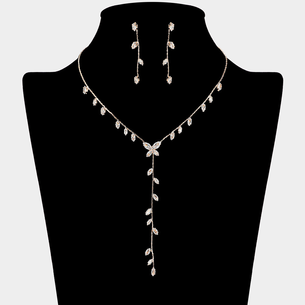 • Elevate your look with this graceful cz marquise stone cluster Leaf Vine Necklace and Earring Set. Featuring a cascading vine design adorned with delicate leaf accents, this elegant ensemble captures natural beauty and timeless sophistication—perfect for weddings, galas, or refined evening occasions.