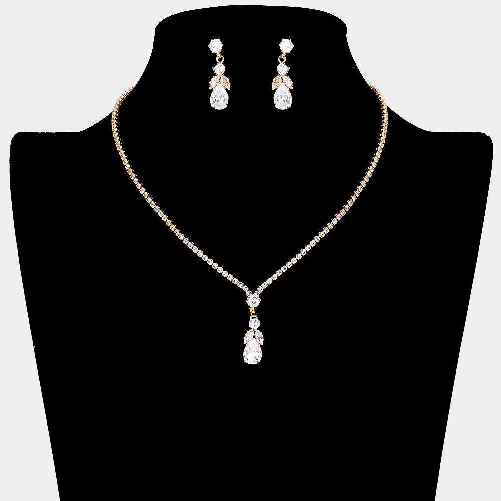 CZ Teardrop Stone Pointed Pendant Rhinestone Paved Necklace