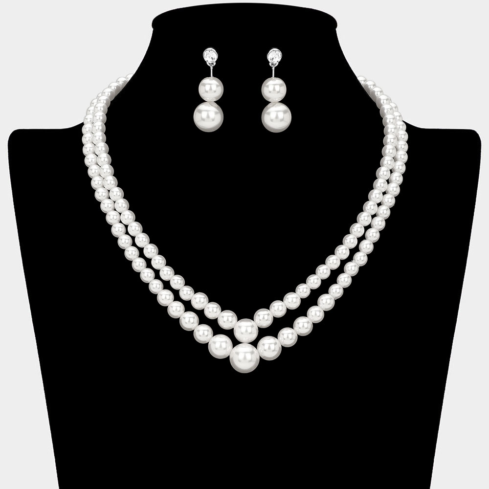 • Elevate your elegance with this double strand pearl necklace and matching earring set, designed for timeless sophistication. The classic layered pearls exude refined beauty, while the coordinated drop earrings complete a graceful look perfect for formal events or everyday luxury.