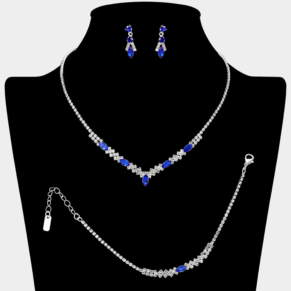 Marquise Stone Cluster Accent Rhinestone Paved Jewelry Set