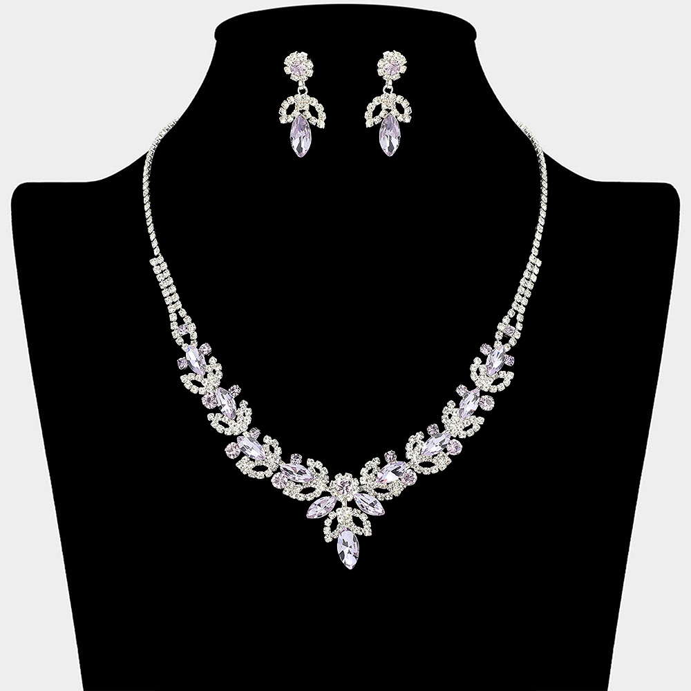 • This statement necklace and matching earring set showcases cascading leaf and drop details in a symmetrical design that frames the neckline beautifully. Ideal for weddings, formal events, evening wear, and special occasions, it delivers refined sparkle and a polished finish to elevated looks.