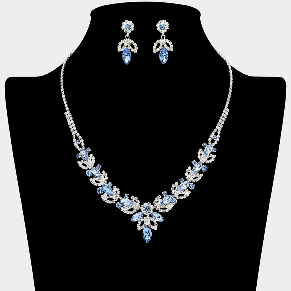 • This statement necklace and matching earring set showcases cascading leaf and drop details in a symmetrical design that frames the neckline beautifully. Ideal for weddings, formal events, evening wear, and special occasions, it delivers refined sparkle and a polished finish to elevated looks.