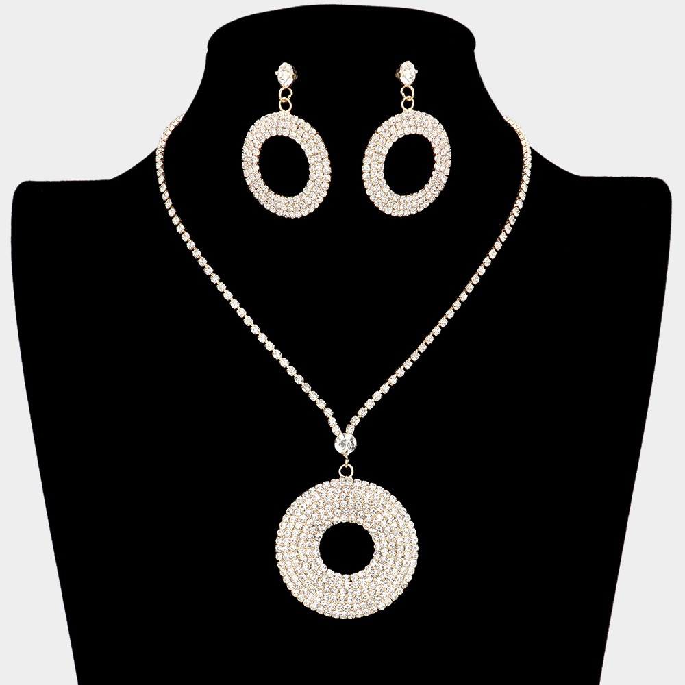 Rhinestone Pave Open Circle Rhinestone Necklace