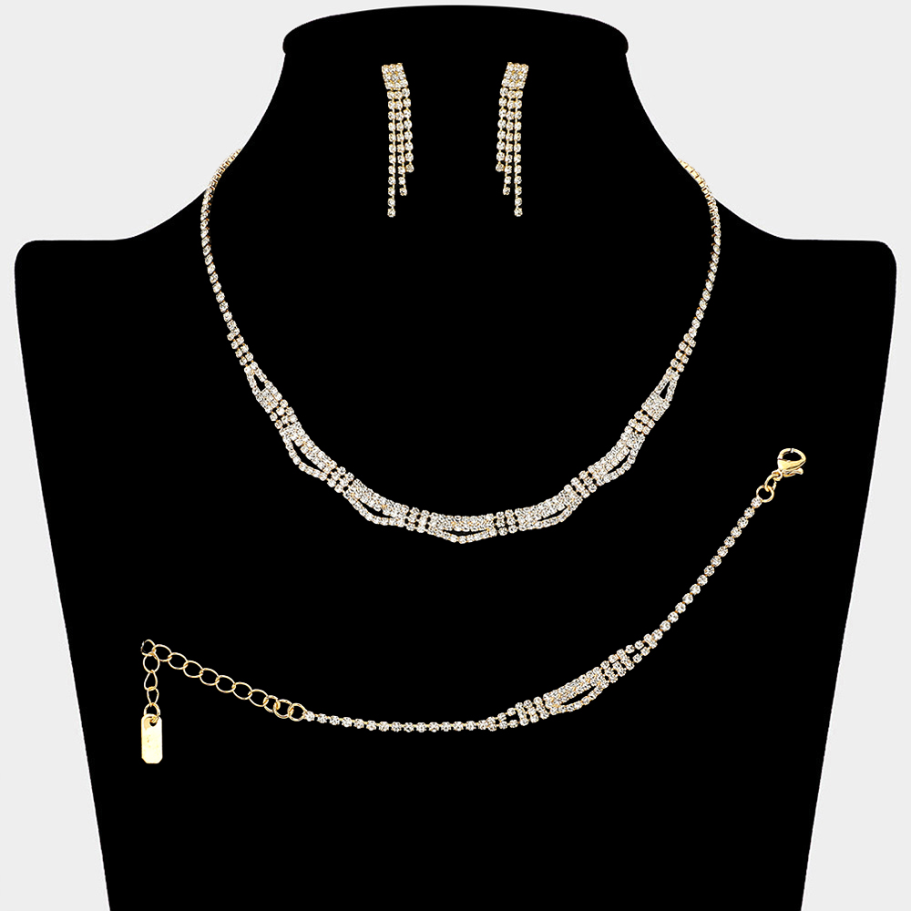 • Refined matching necklace, earring, and bracelet set designed with coordinated detailing for a polished and cohesive look. Ideal for weddings, formal events, parties, and evening wear. This versatile set delivers timeless elegance and effortless styling for special occasions.