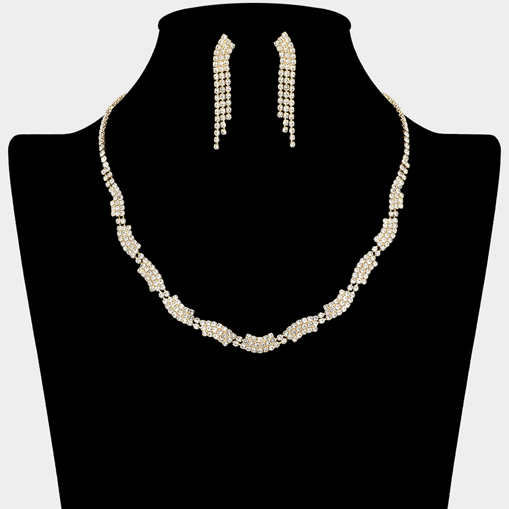 • Elegant necklace and matching drop earring set designed with a refined silhouette for timeless appeal. Ideal for weddings, formal occasions, parties, and evening wear. A versatile statement set that enhances both classic and modern special occasion styling.