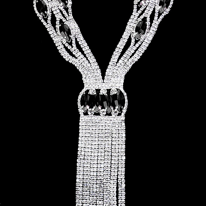 Rhinestone Trim Crystal Oval Fringe Necklace