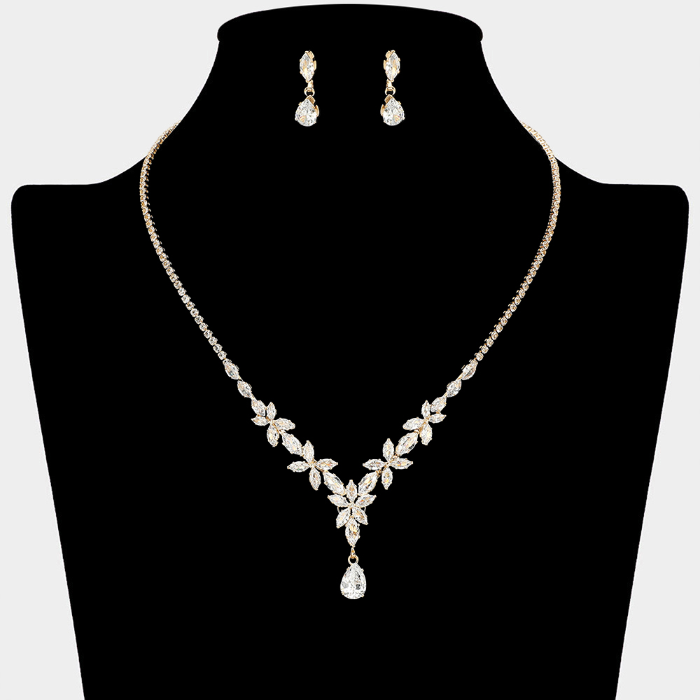 Teardrop CZ Stone Cluster Drop Marquise Cluster Embellished Necklace