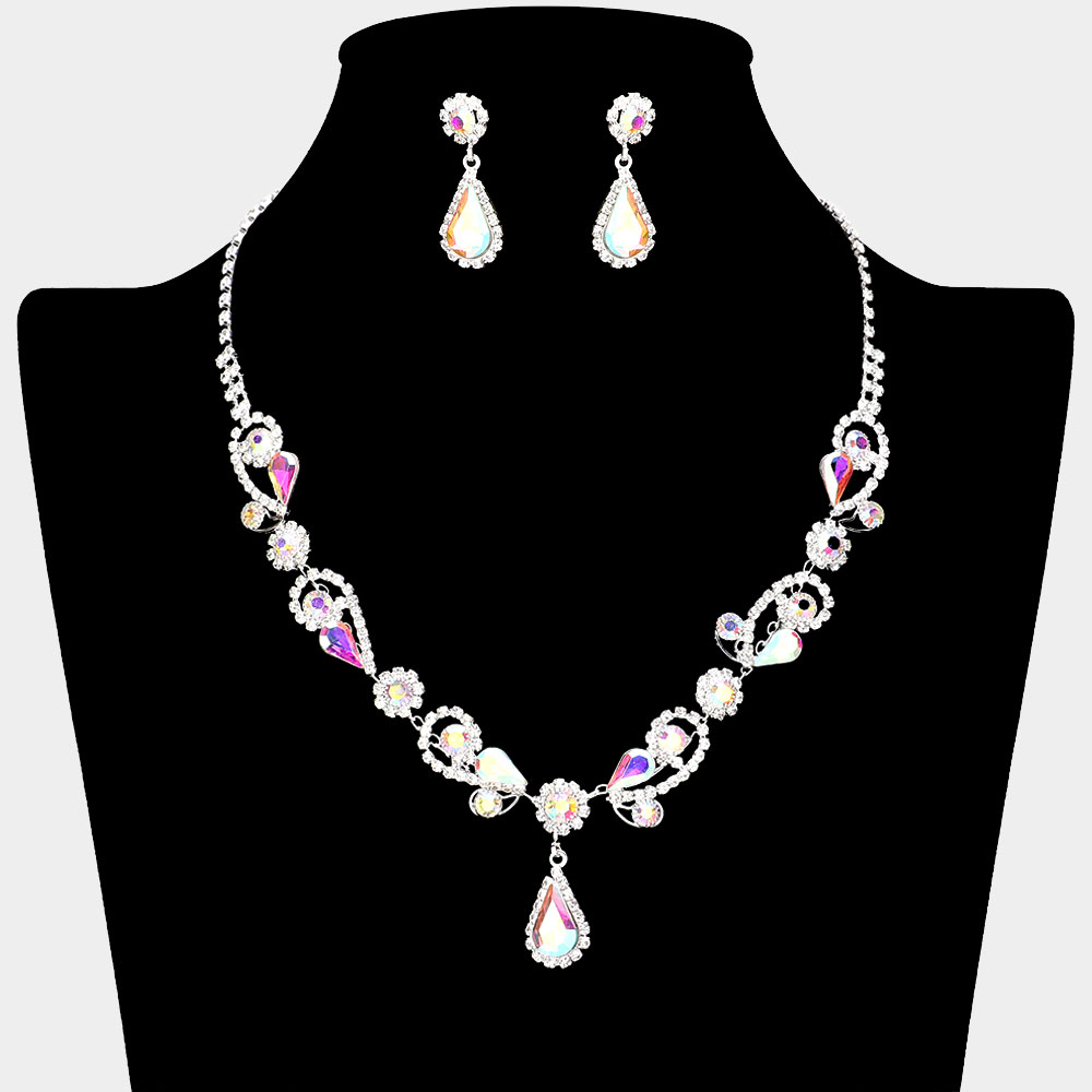 Teardrop Pendant Flower Pointed Rhinestone Paved Necklace