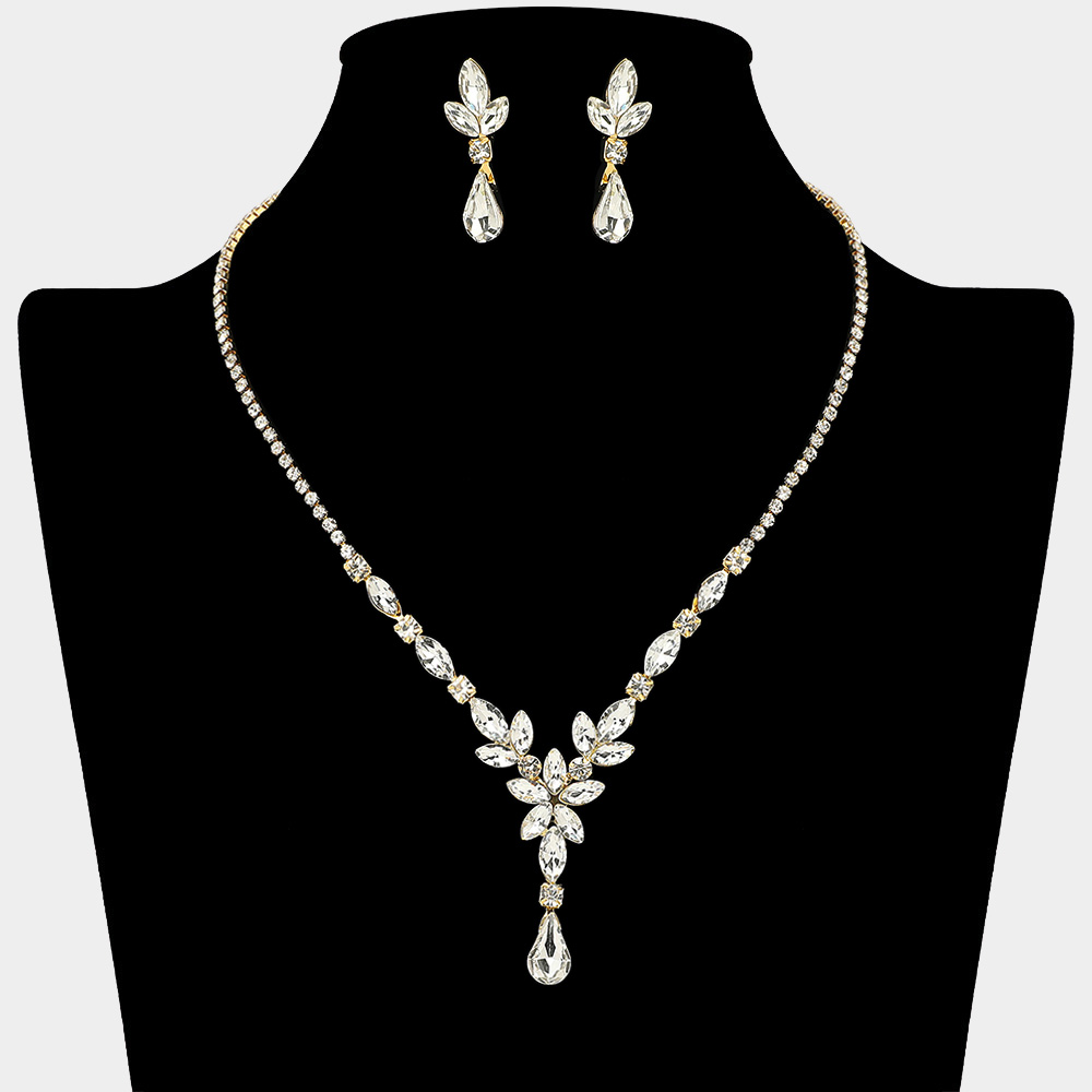 Teardrop Marquise Leaf Glass Stone Evening Necklace