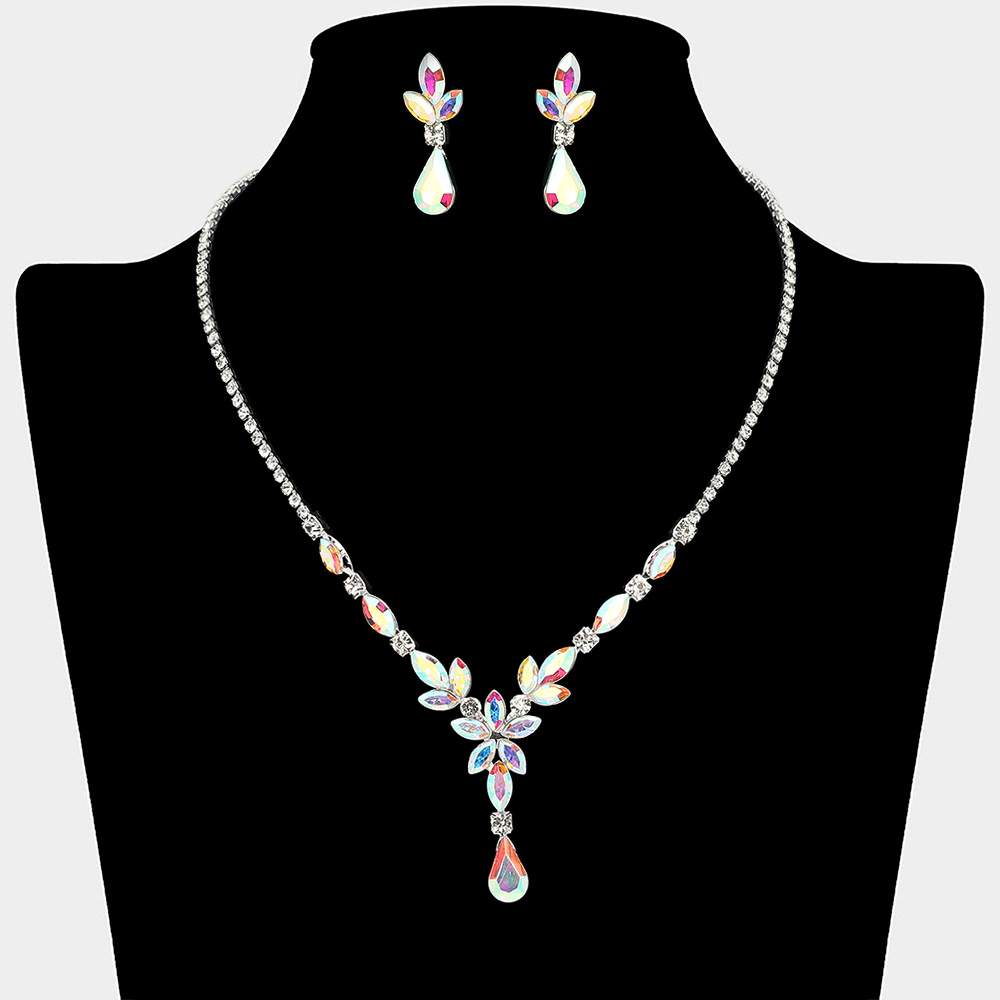 • Add refined sparkle to your look with this crystal teardrop leaf necklace and earring set, featuring elegant marquise-cut accents and a delicate drop pendant. Perfect for brides, evening galas, or special occasions, this timeless jewelry set enhances any outfit with radiant sophistication.