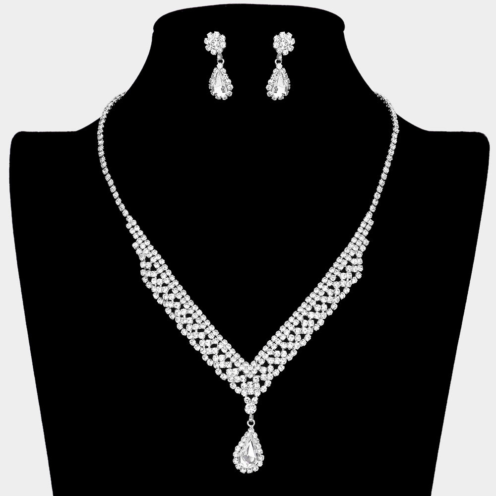 • Add timeless sophistication with this stunning crystal teardrop necklace and earring set. Featuring a radiant teardrop pendant and matching drop earrings, this set is perfect for weddings, galas, and special occasions. A statement piece designed to elevate any outfit.