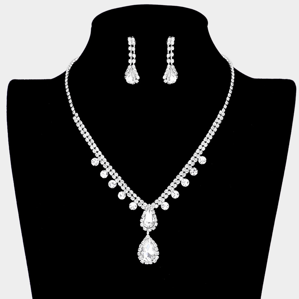 Teardrop Stone Accented Rhinestone Pave Necklace