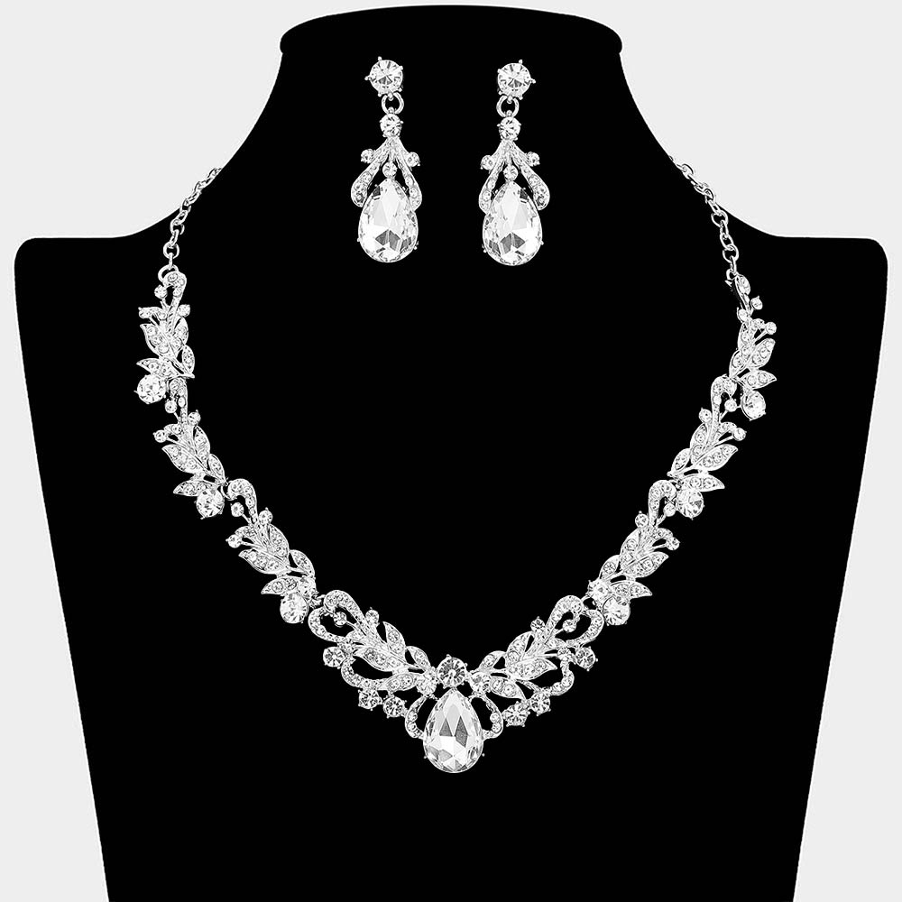 • Elevate special occasion styling with this elegant necklace and earring set designed with graceful teardrop accents and detailed patterns. Ideal for weddings, formal events, proms, and evening wear, this coordinated set adds refined sparkle and timeless sophistication to any dress or gown.
