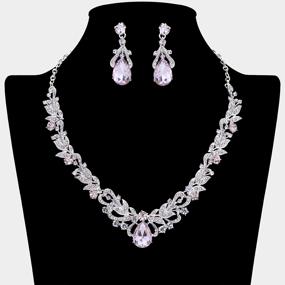 Details • Necklace Size : 18" + 3" L • Decor Size : 1" L • Earrings Size : 1.7" L • Elevate special occasion styling with this elegant necklace and earring set designed with graceful teardrop accents and detailed patterns. Ideal for weddings, formal events, proms, and evening wear, this coordinated set adds refined sparkle and timeless sophistication to any dress or gown.