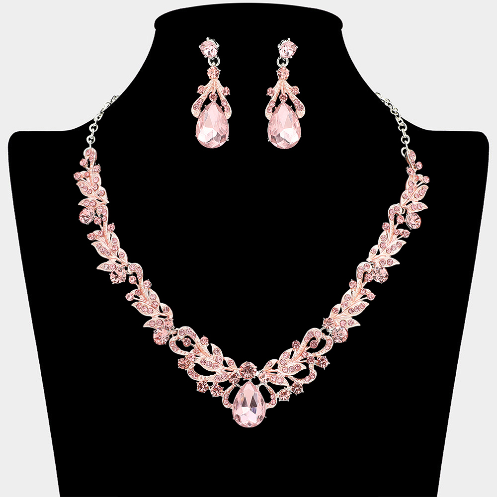 • Elevate special occasion styling with this elegant necklace and earring set designed with graceful teardrop accents and detailed patterns. Ideal for weddings, formal events, proms, and evening wear, this coordinated set adds refined sparkle and timeless sophistication to any dress or gown.