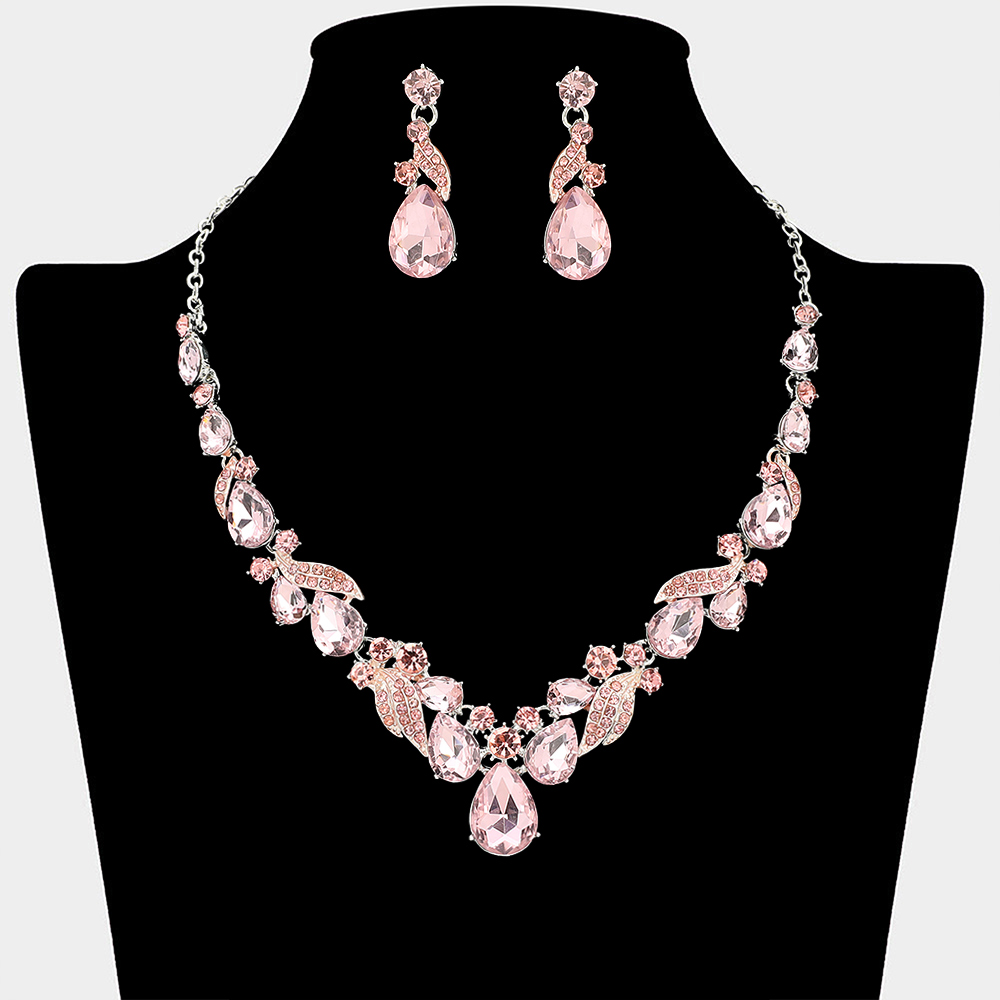 • Elevate formal and evening looks with this statement necklace and earring set featuring layered teardrop and marquise accents arranged in a graceful, eye-catching design. Ideal for weddings, proms, parties, and special occasions, this coordinated set adds dramatic sparkle and refined glamour to any outfit.