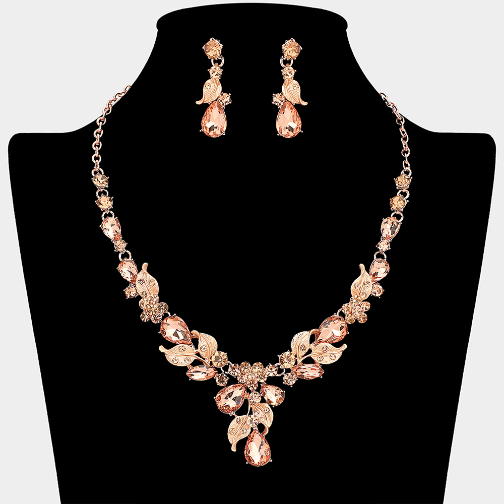 Teardrop Stone Cluster Leaf Embellished Necklace