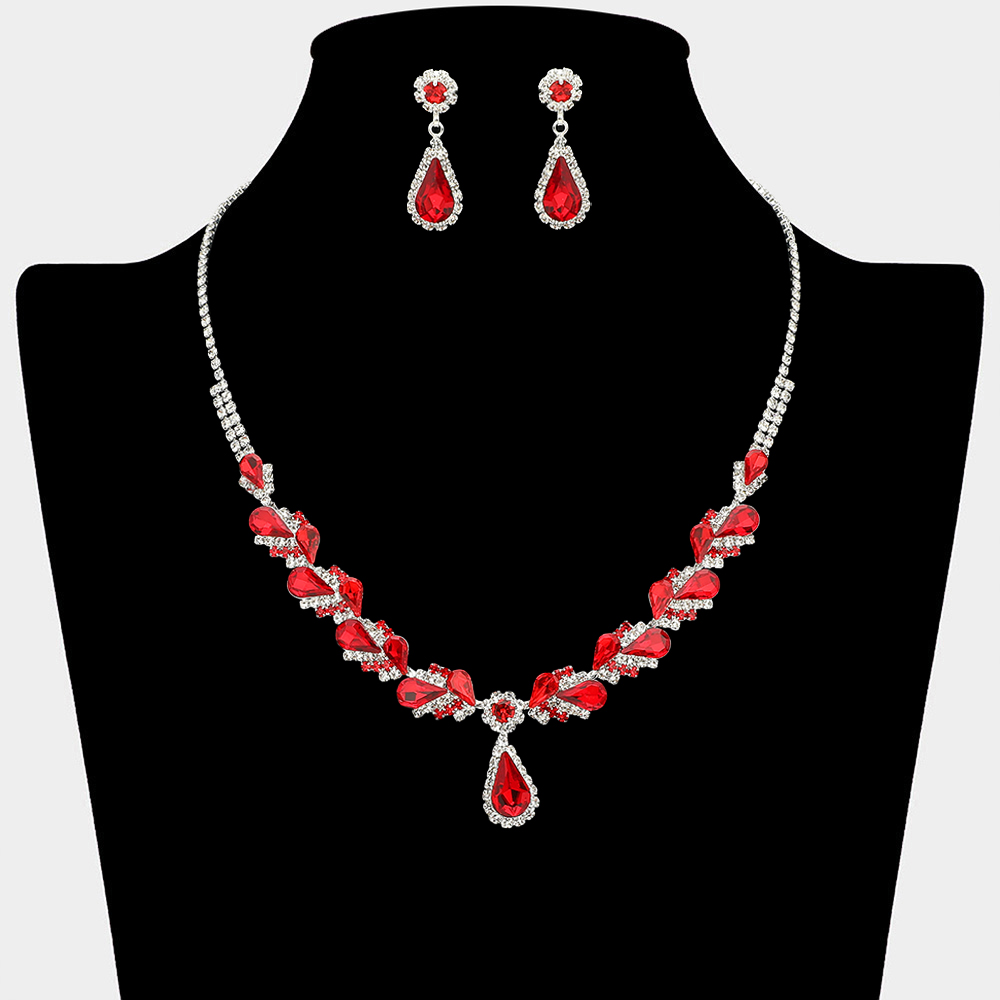 • This teardrop statement necklace and earring set features layered sparkle with elegant drop accents that frame the neckline beautifully. Designed for special occasions, formal events, and evening styling, it offers a refined coordinated look ideal for boutiques and gift-ready collections.