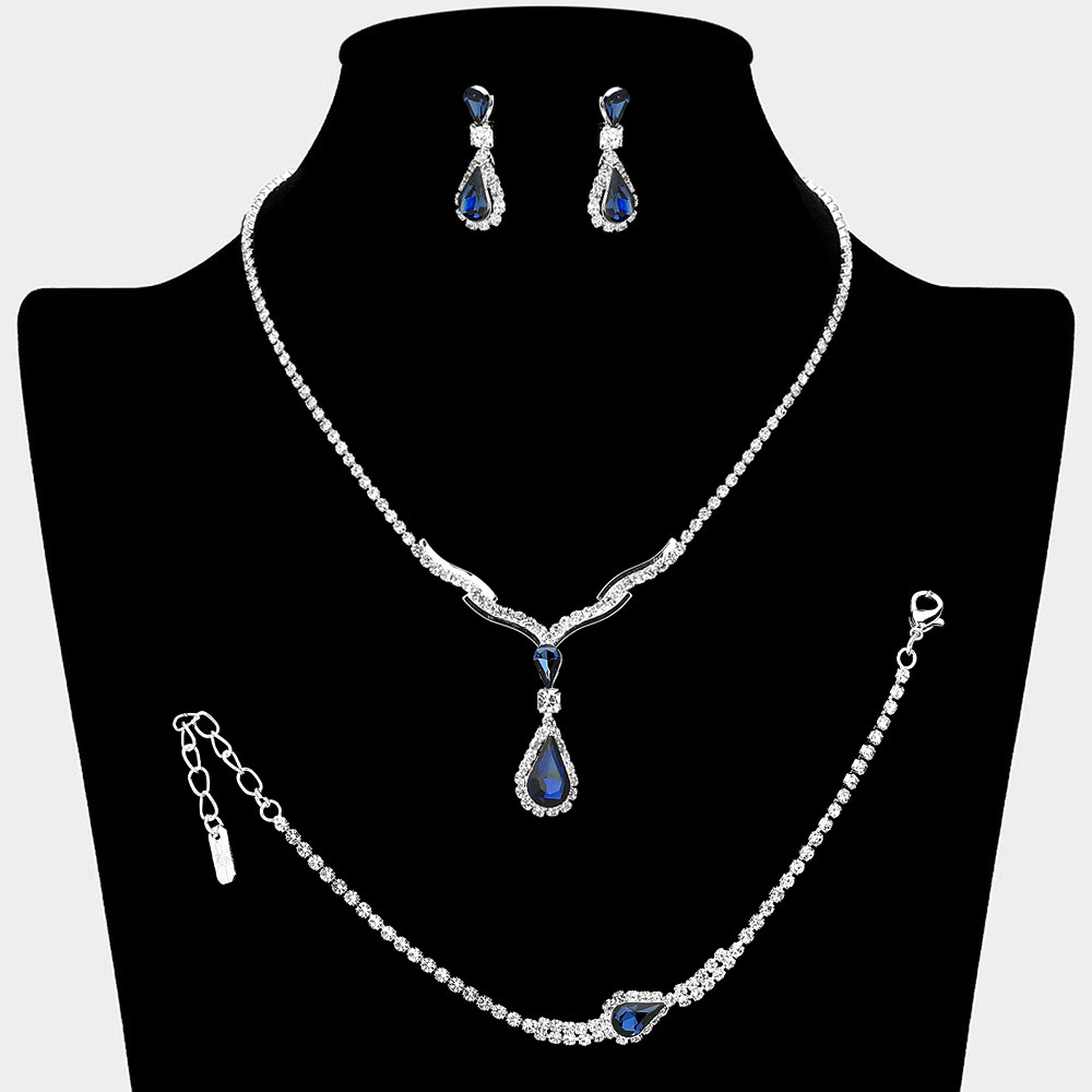 Teardrop Stone Pendant Accent Rhinestone Paved Jewelry Set