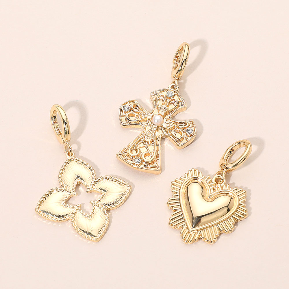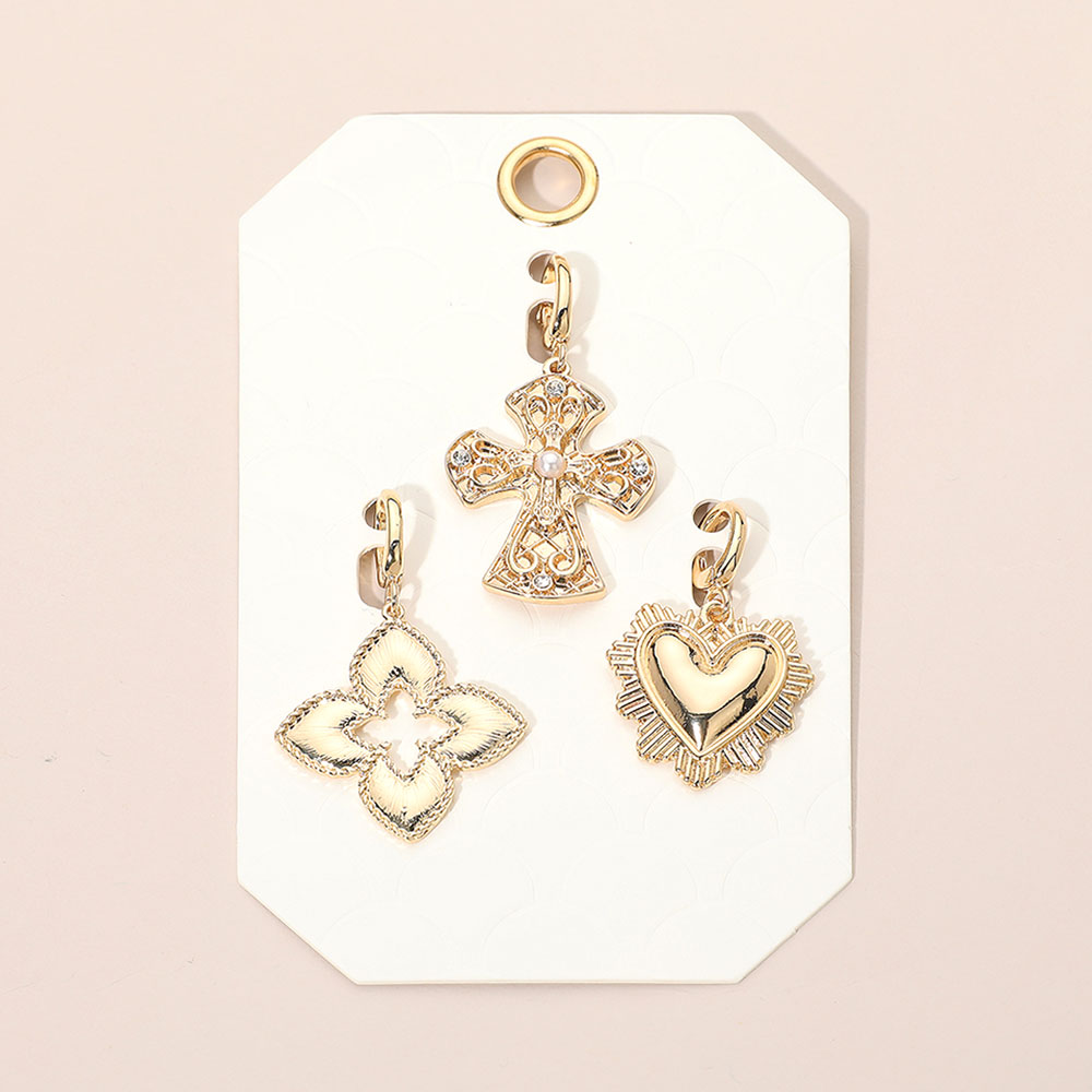 3PCS - Cross Heart Floral Motif Pendant Charm Set 3PCS - Cross Heart Floral Motif Pendant Charm Set 3PCS - Cross Heart Floral Motif Pendant Charm Set