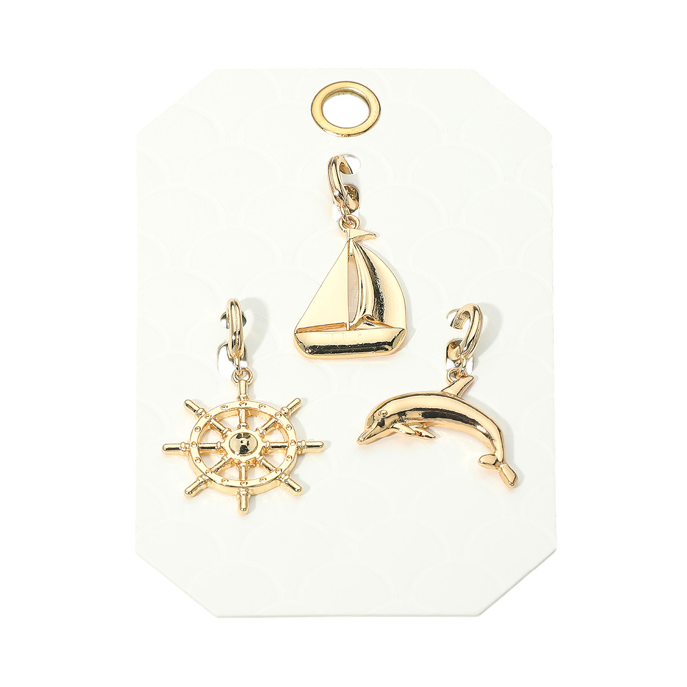 • Embrace the spirit of the sea with this nautical charm set featuring a ship wheel, sailboat, and dolphin design. Perfect for enhancing bracelets, necklaces, or accessories, these pendants bring a touch of maritime adventure and style to any jewelry collection.